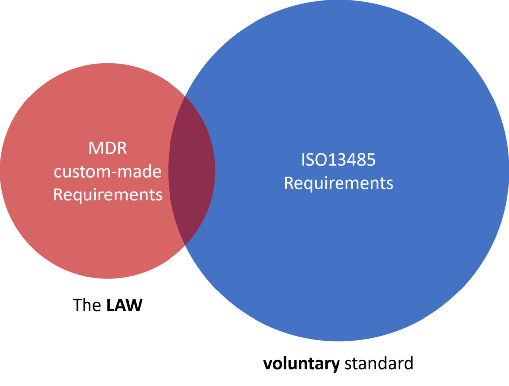 In reality, the MDR contains several requirements that are not explicitly covered by the ISO standard, especially for custom-made devices.